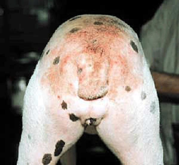 Hundens kløen og biden i kombination med inflammationen kan resultere i, at de inflammerede områder af huden udvikler sig til såkaldte “hotspots” (cirkulære, røde, smertefulde sår). Hotspots kan opstå hvor som helst, men forekommer hyppigst omkring roden af halen. Andre hyppigt ramte områder inkluderer: bugen, den nedre del af ryggen, halsen og bagsiden af benene.